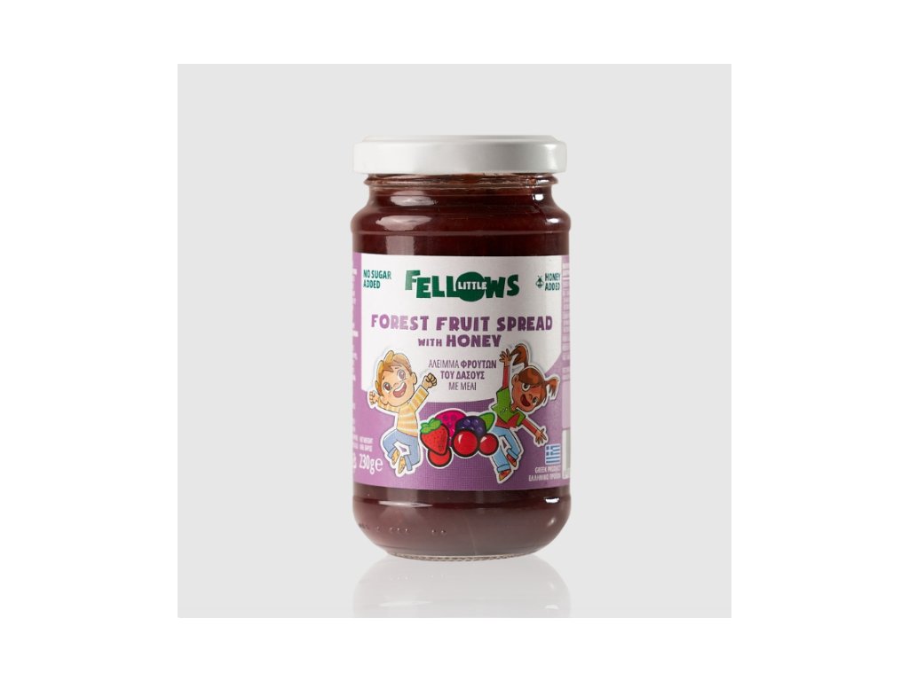 Detská nátierka z lesného ovocia s prírodným medom. Bohatá na arómu a sladkú chuť, ideálna na dezerty, chlieb a sladké raňajky.